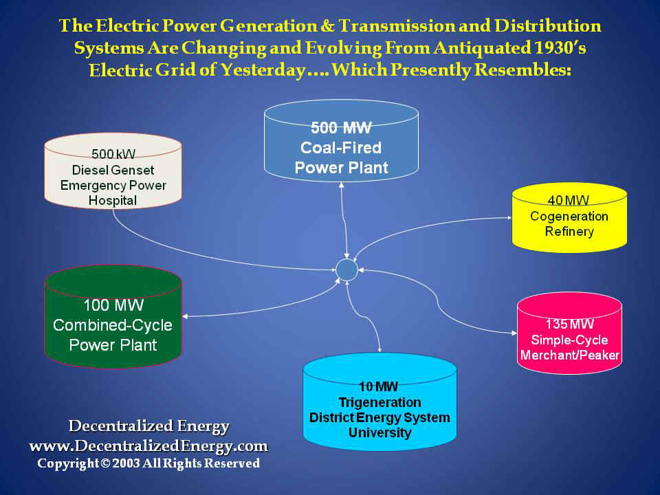 Today's electric utility industry was "born" in the 1930's, when fossil fuel prices were cheap, and the cost of wheeling the electricity via transmission power lines, was also cheap. "Central" power plants could be located hundreds of miles from the load centers, or cities, where the electricity was needed. These extreme inefficiencies and cheap fossil fuel prices have added a considerable economic and environmental burden to the consumers and the planet.